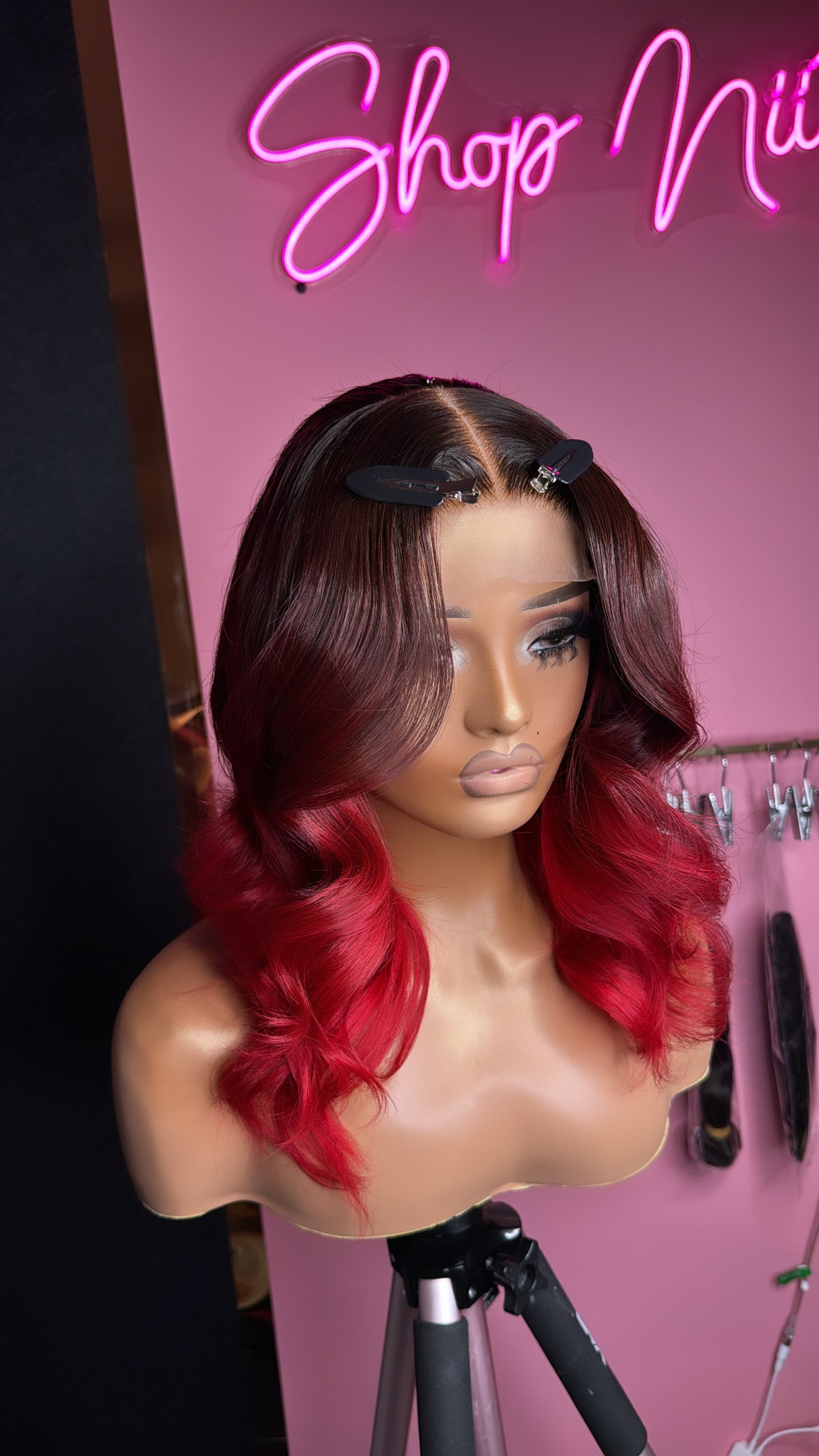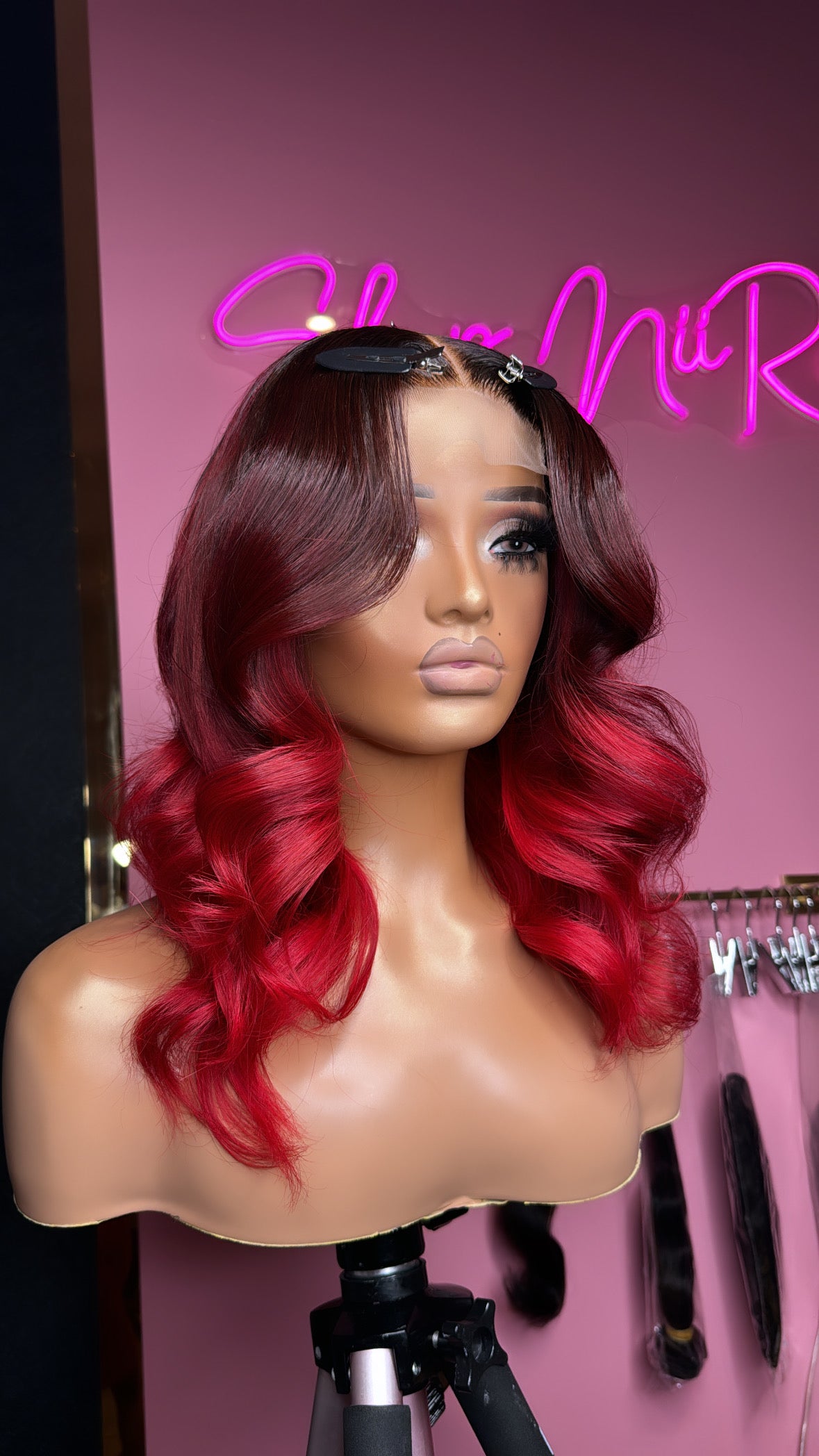 Bright Red ombré wig